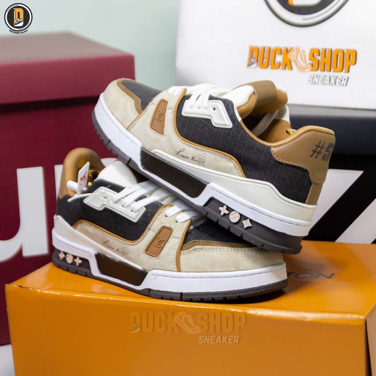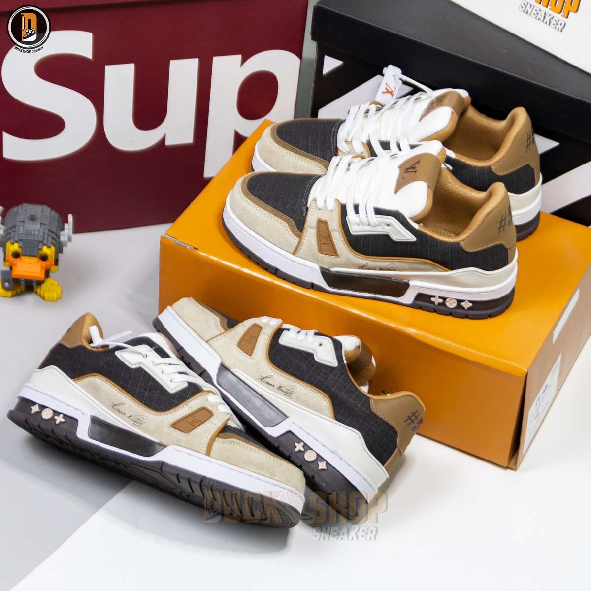 Giày Louis Vuitton LV Trainer #54 Signature Brown