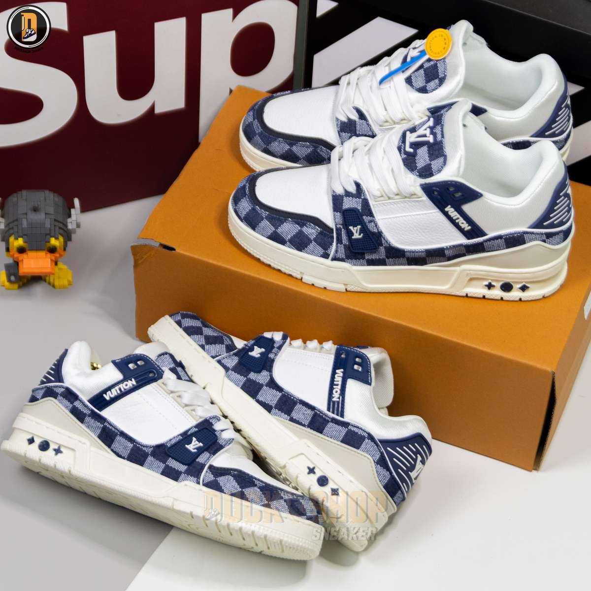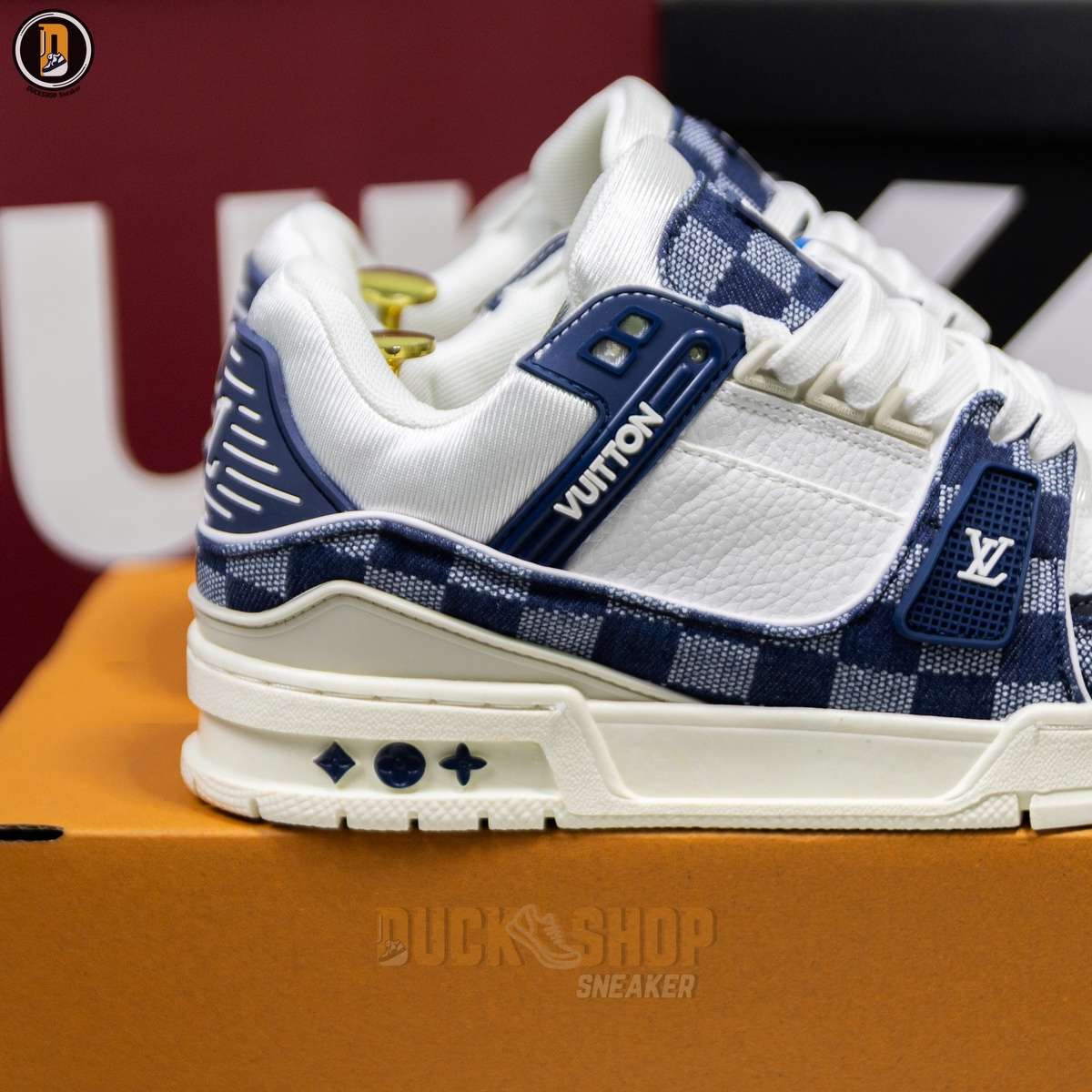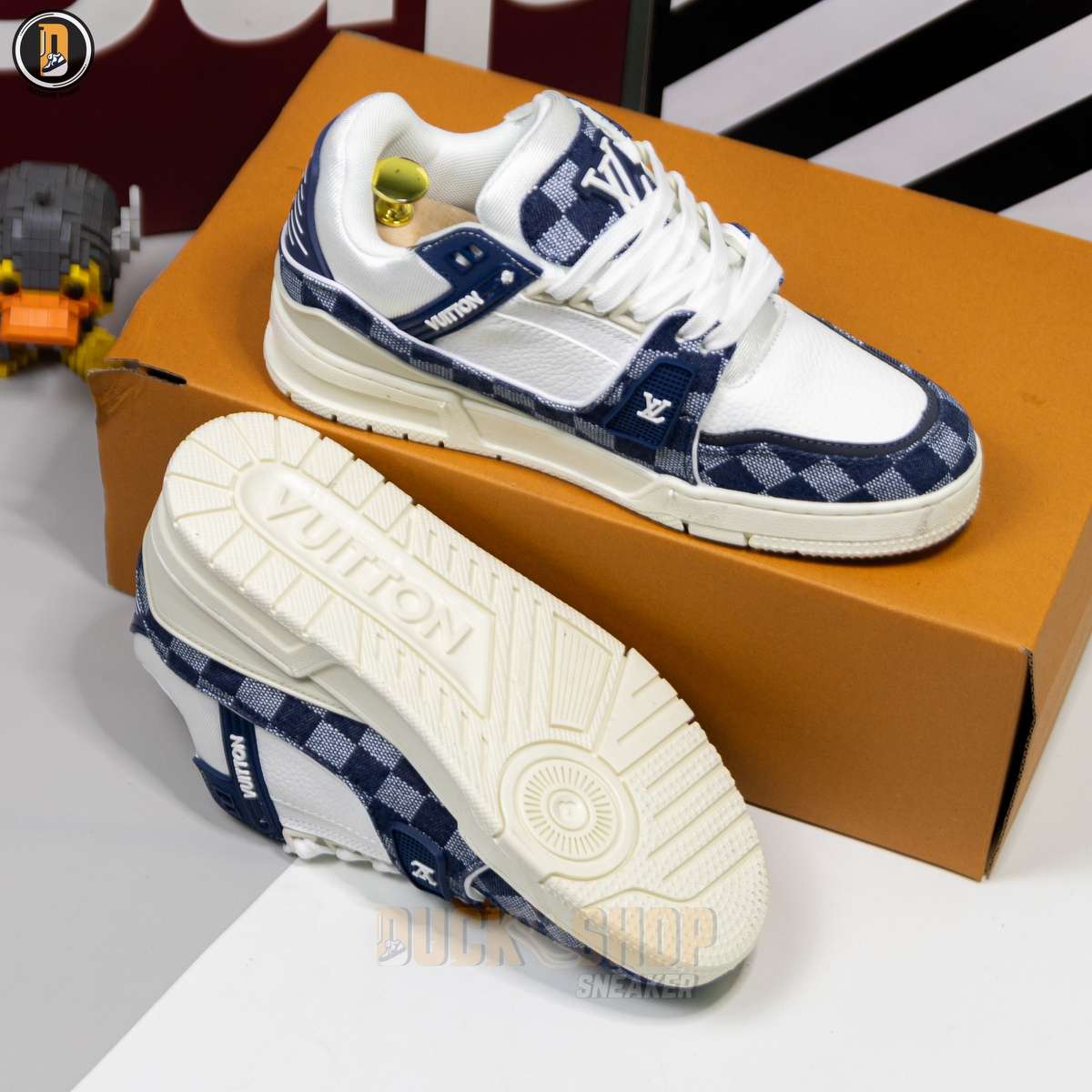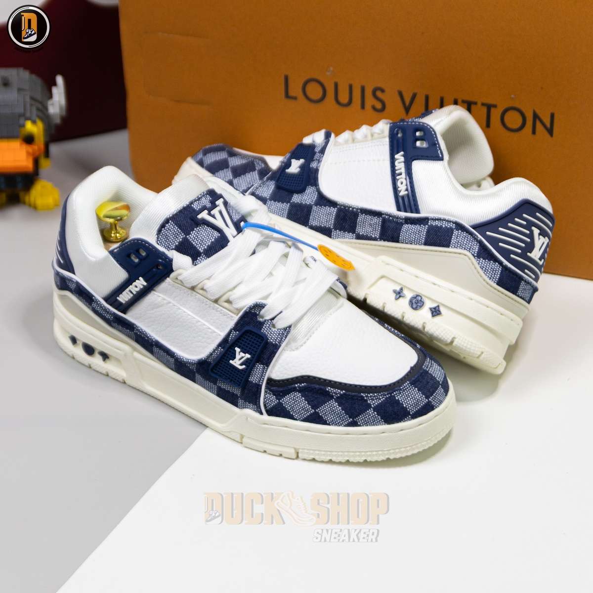 Giày Louis Vuitton LV Trainer Damier Denim Blue