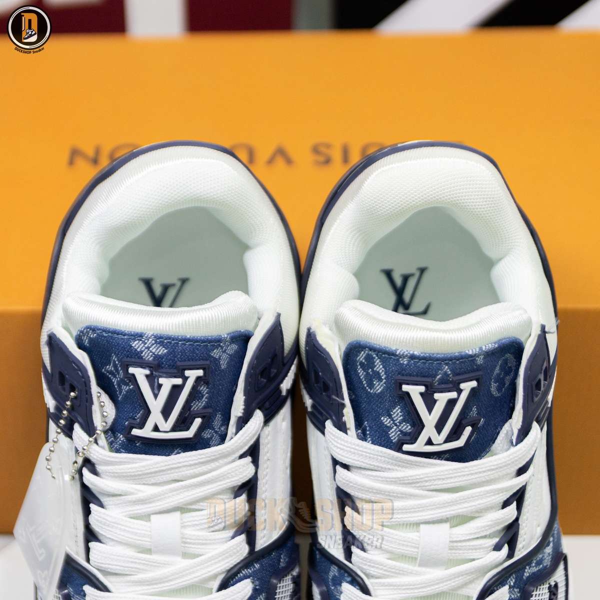 Giày Louis Vuitton LV Trainer Monogram Denim White Blue