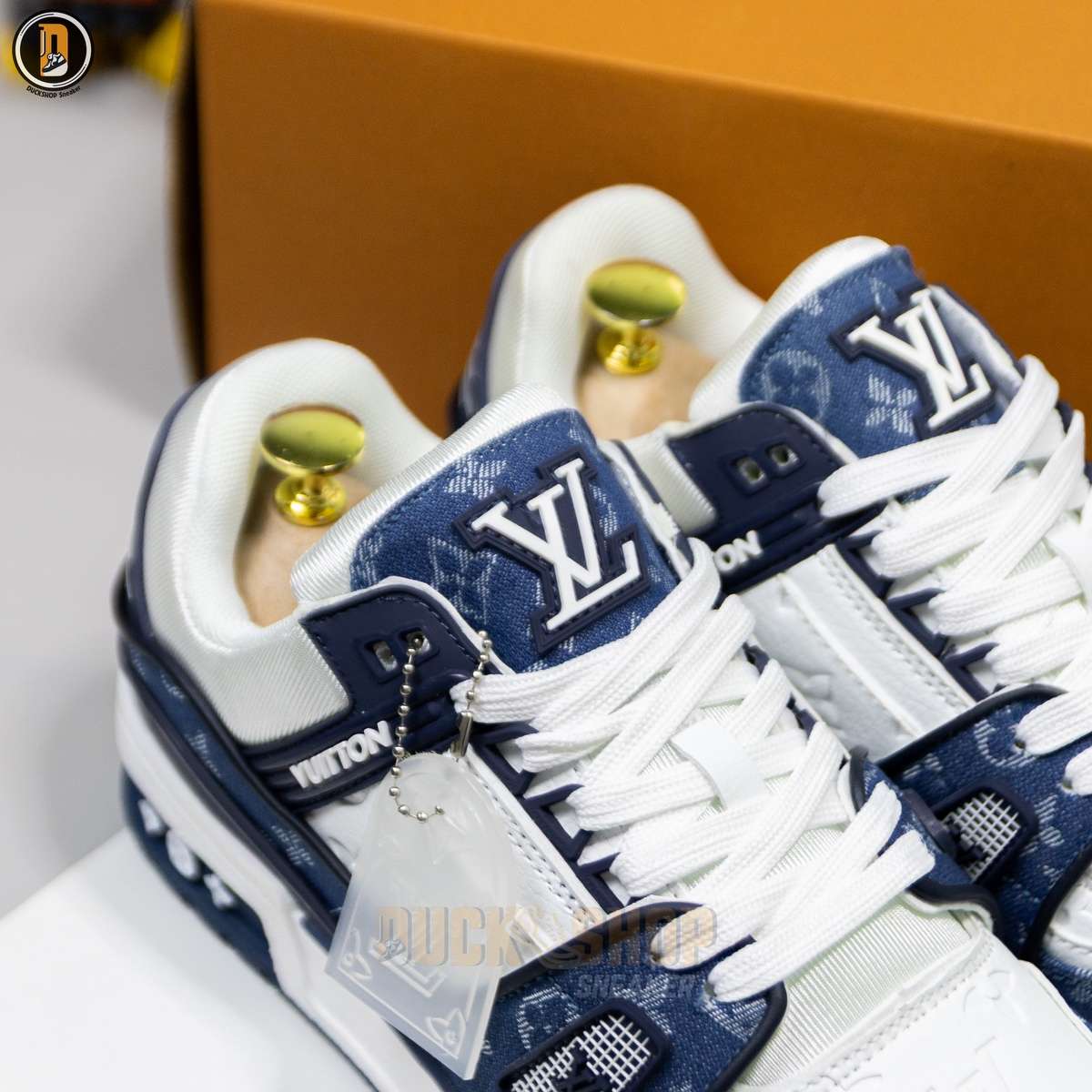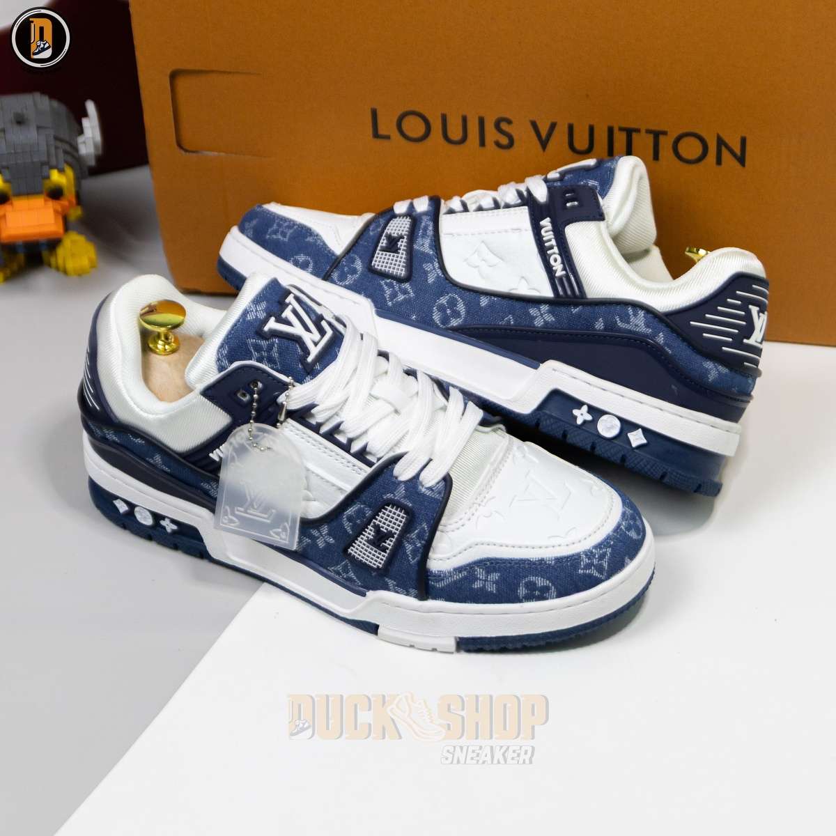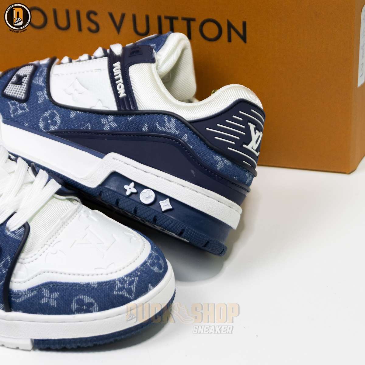 Giày Louis Vuitton LV Trainer Monogram Denim White Blue