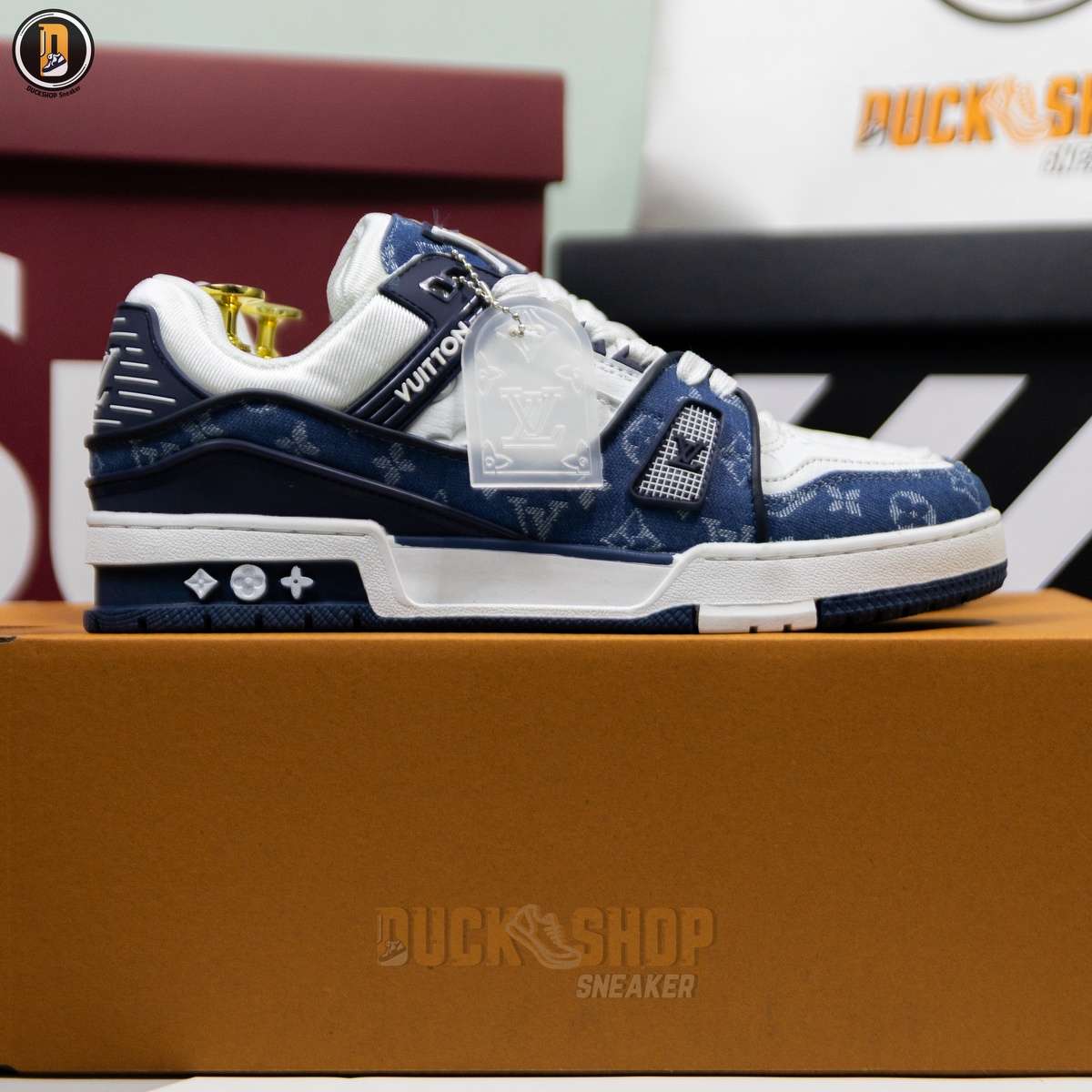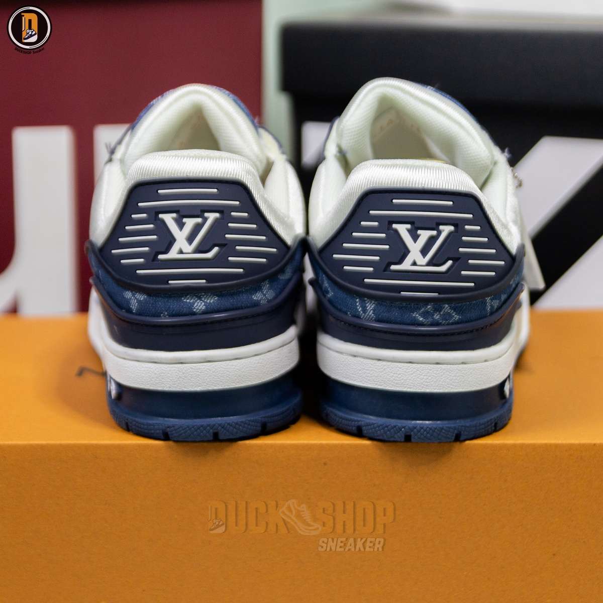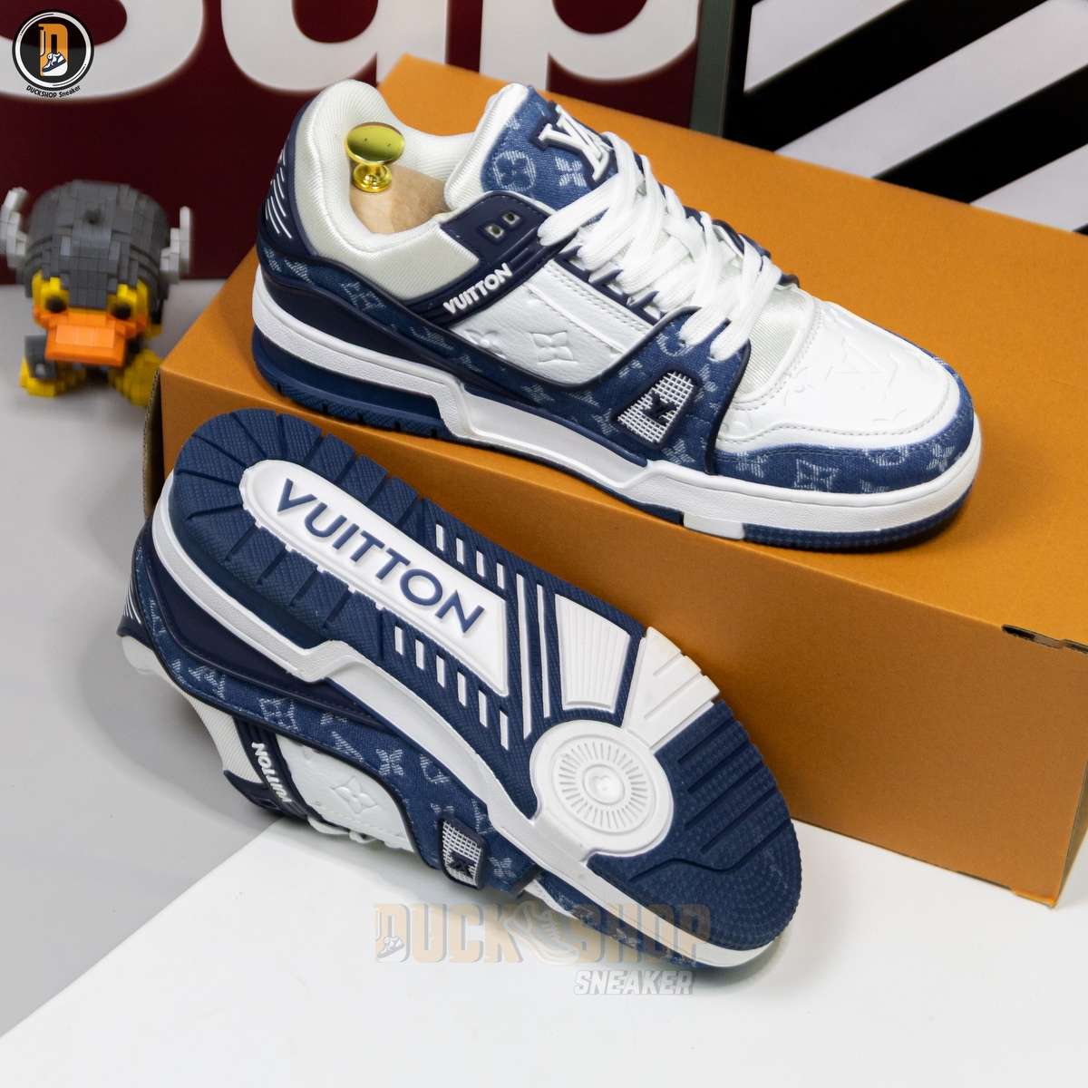 Giày Louis Vuitton LV Trainer Monogram Denim White Blue