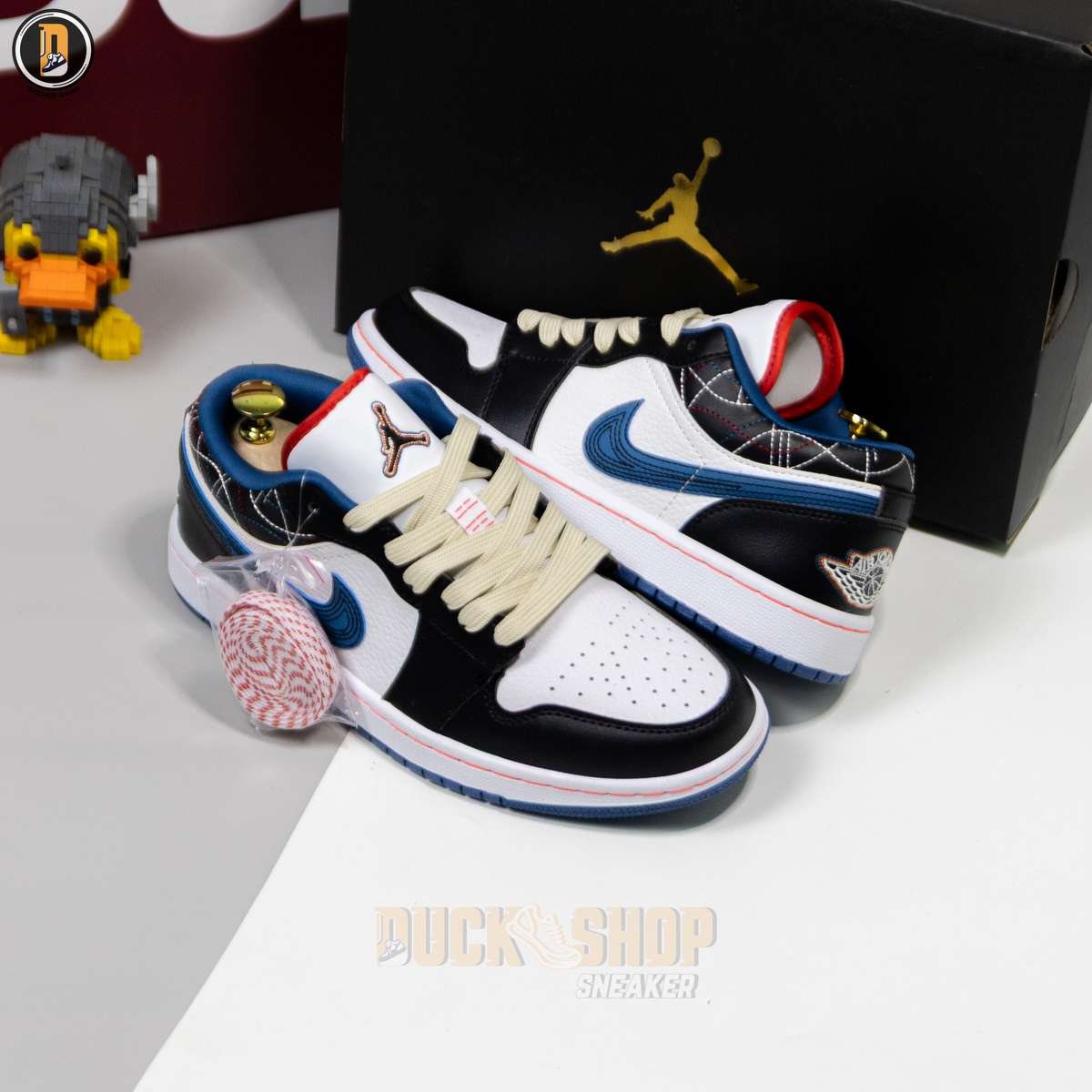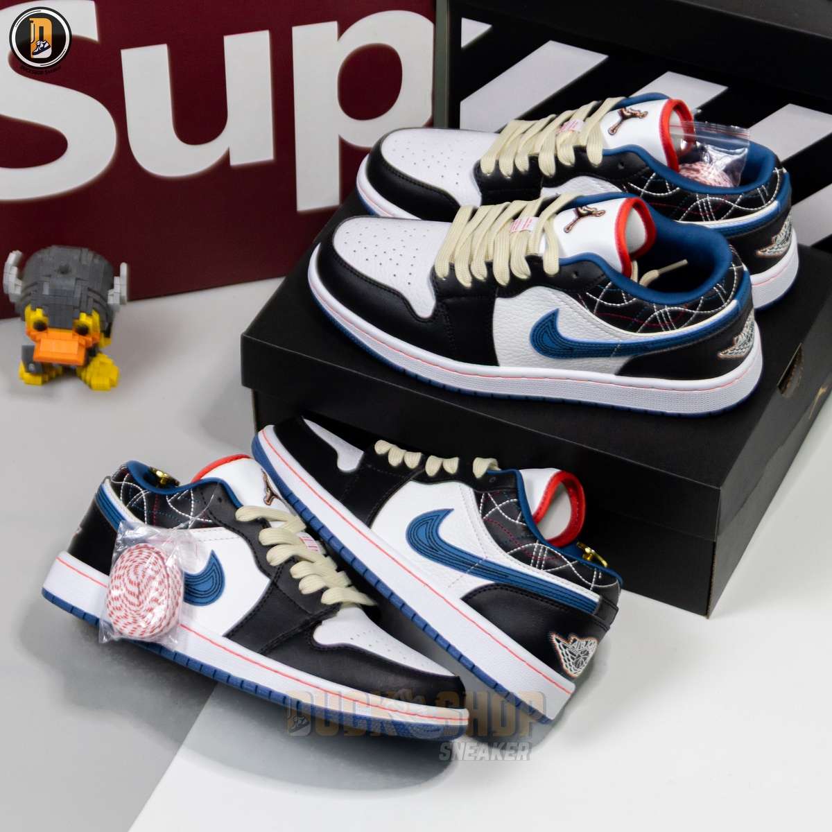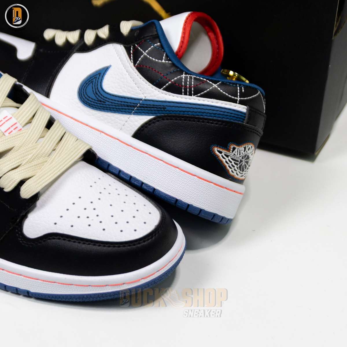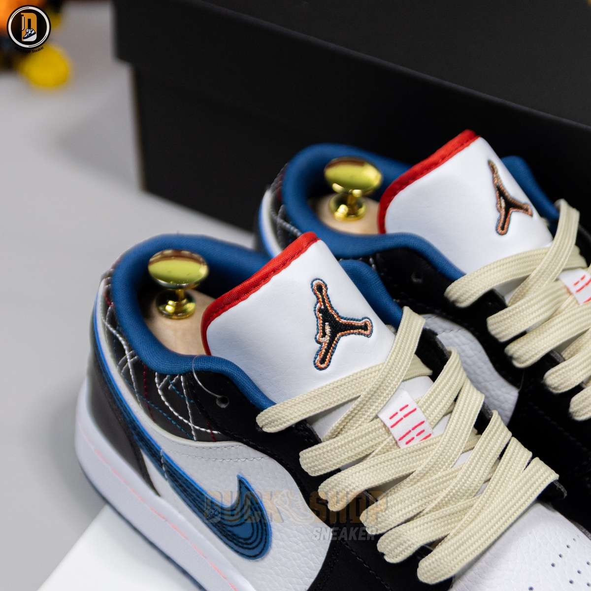 Giày Nike Air Jordan 1 Low White Industrial Blue Siren Red Like Auth