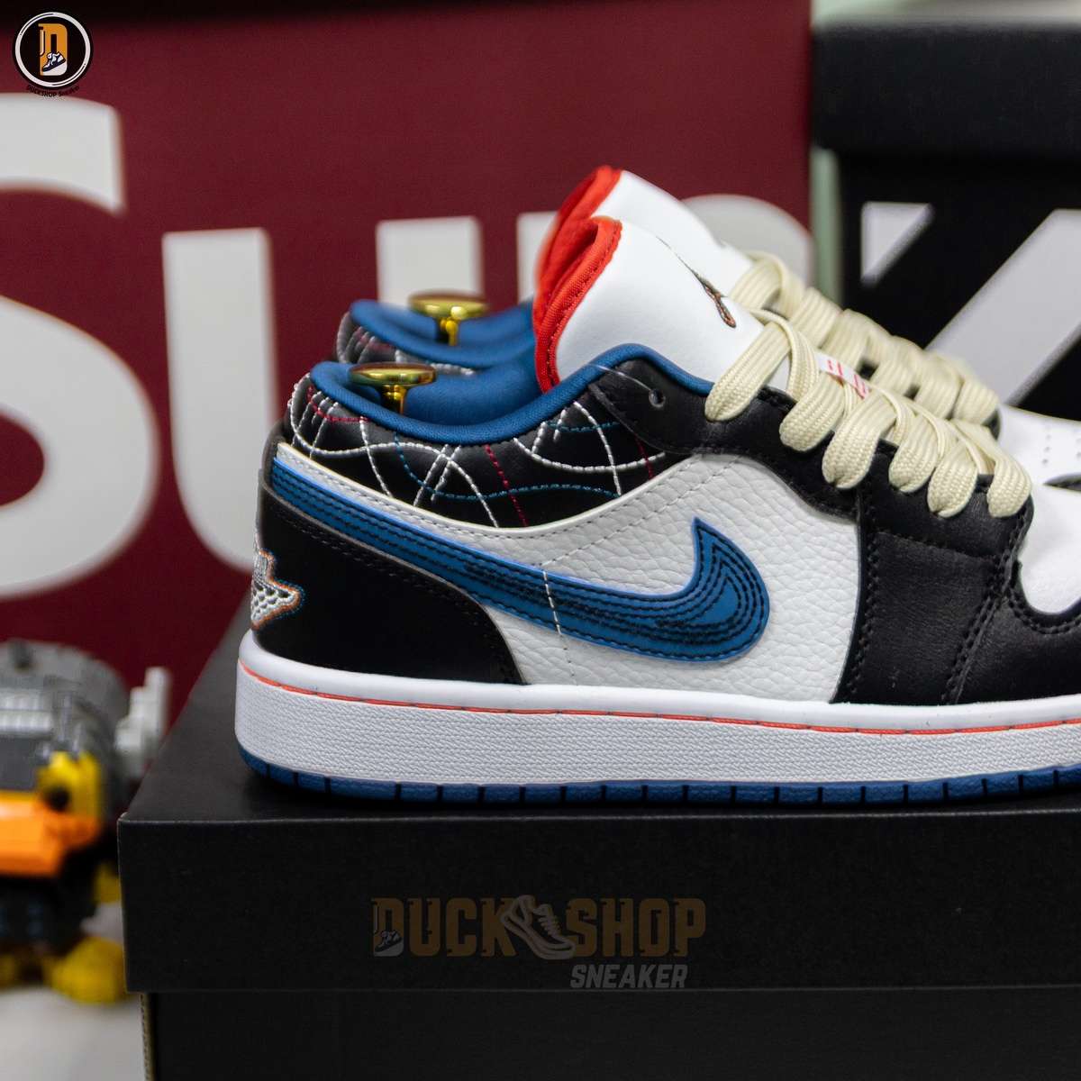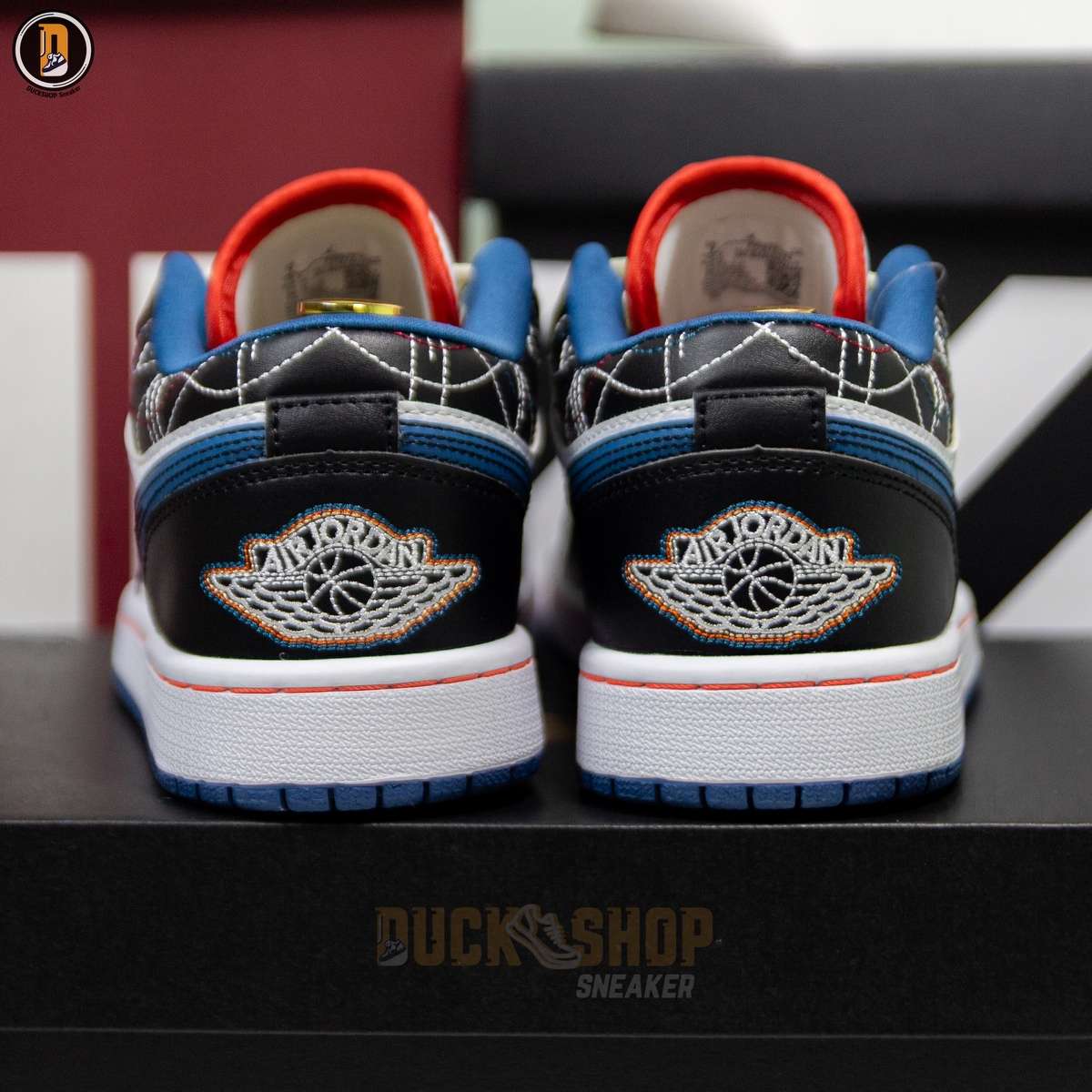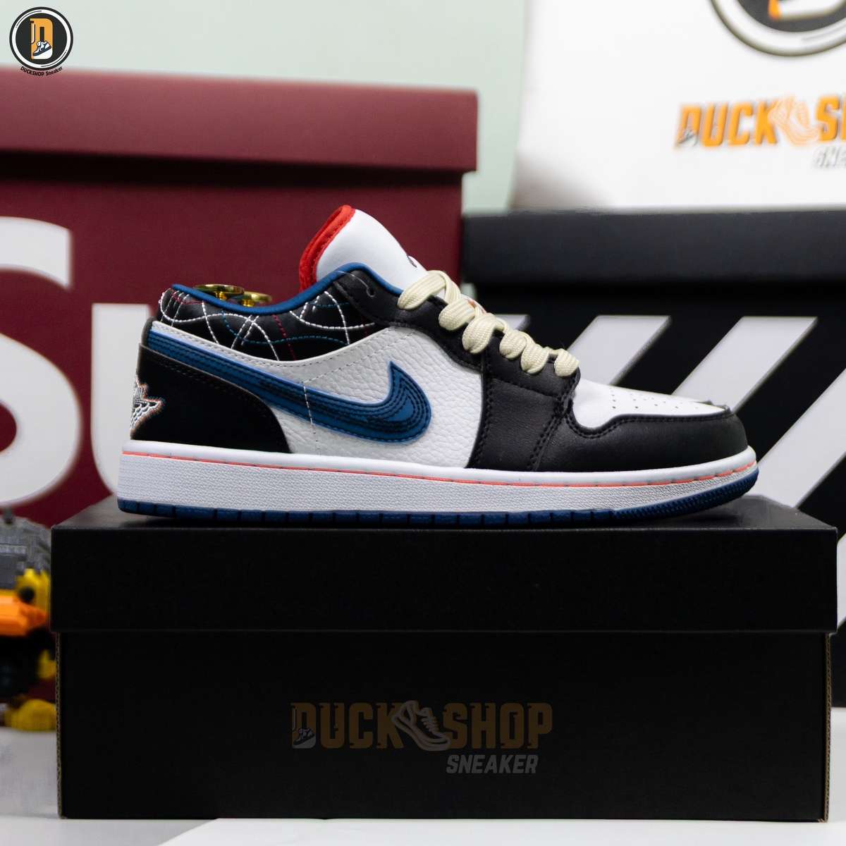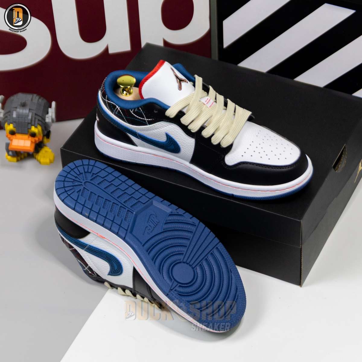 Giày Nike Air Jordan 1 Low White Industrial Blue Siren Red Like Auth
