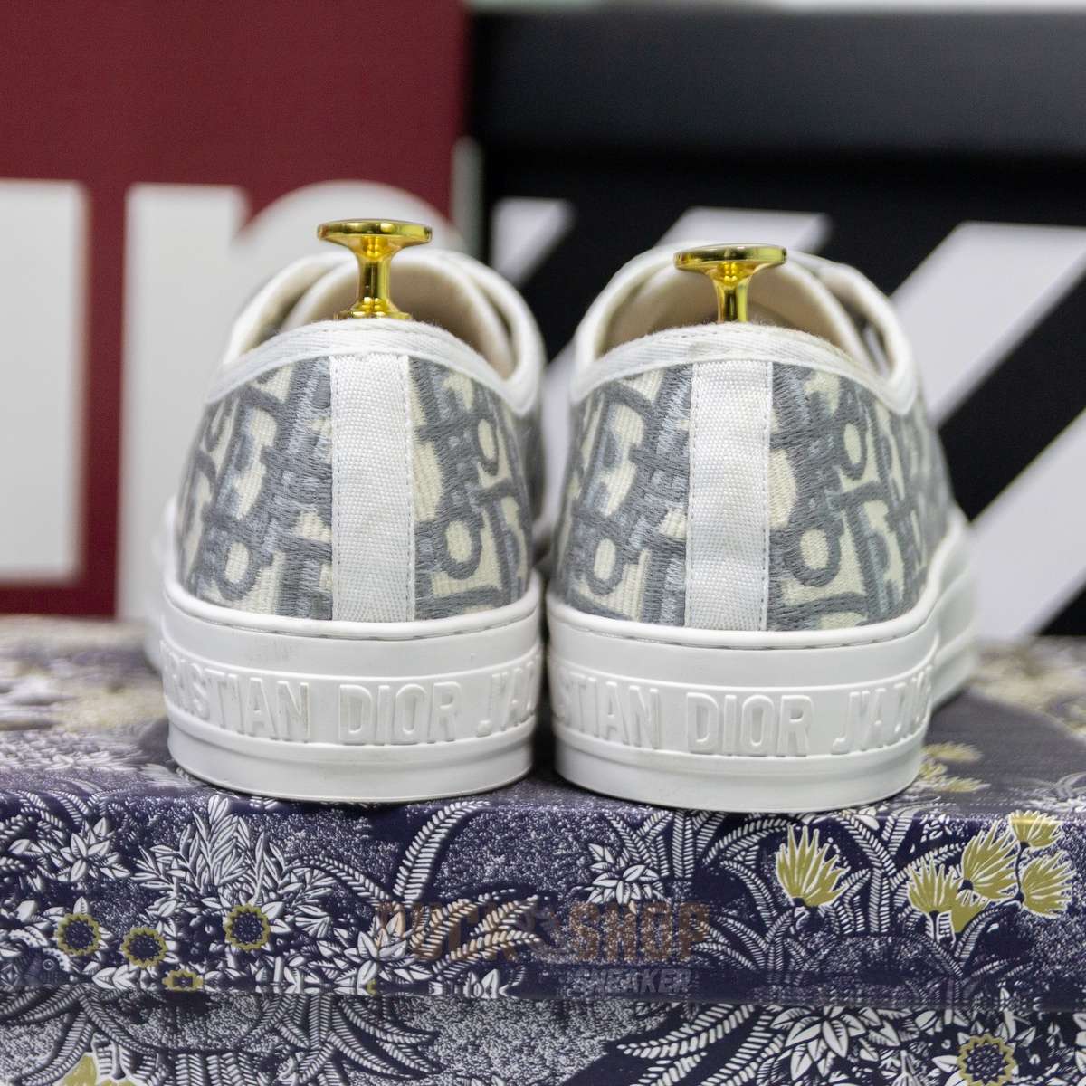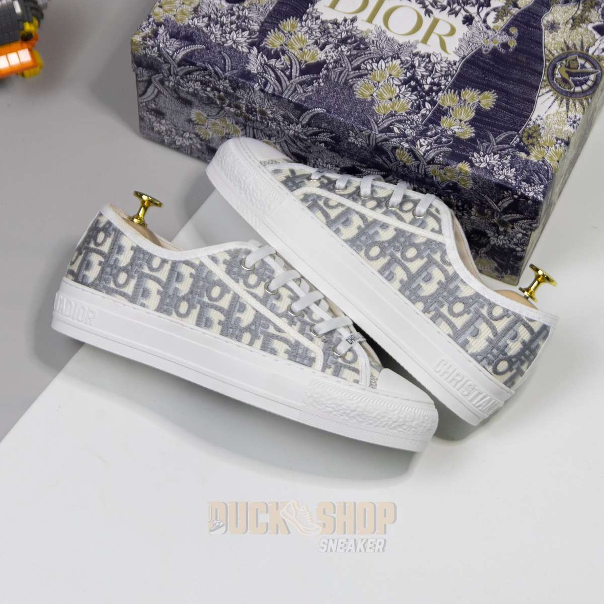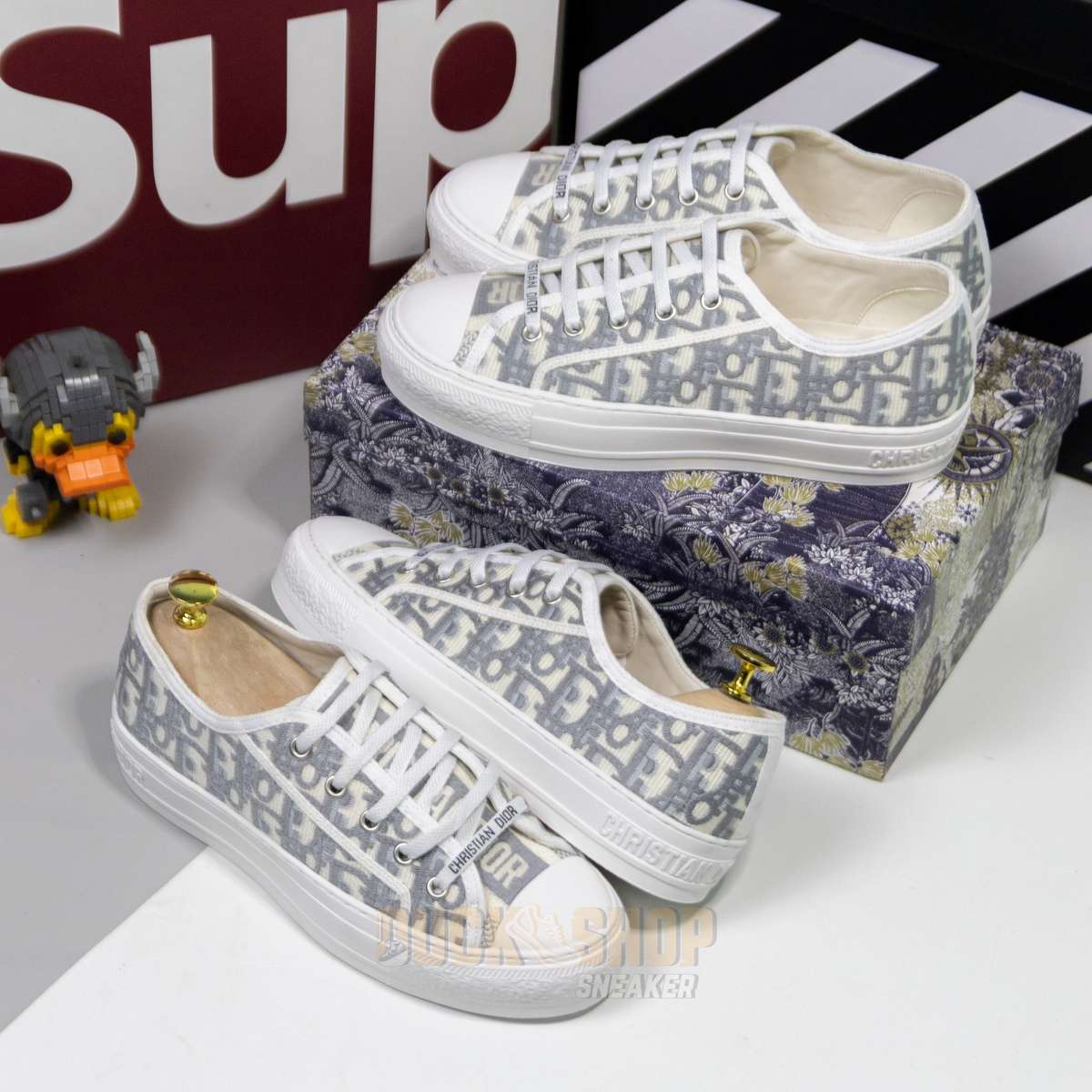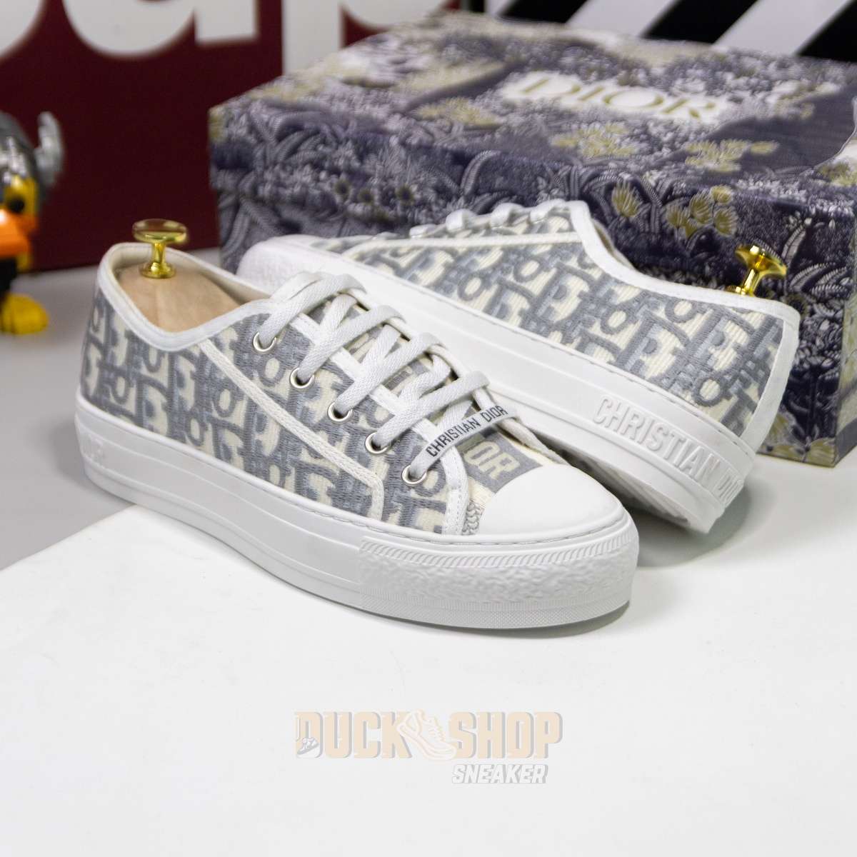 Giày WALK’N’DIOR SNEAKER Gray Stone Dior Oblique Embroidered Cotton B56