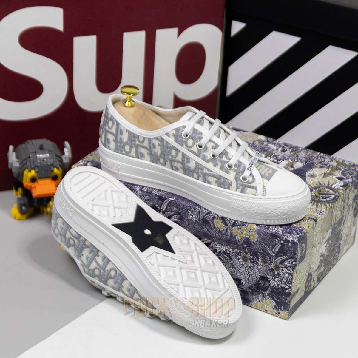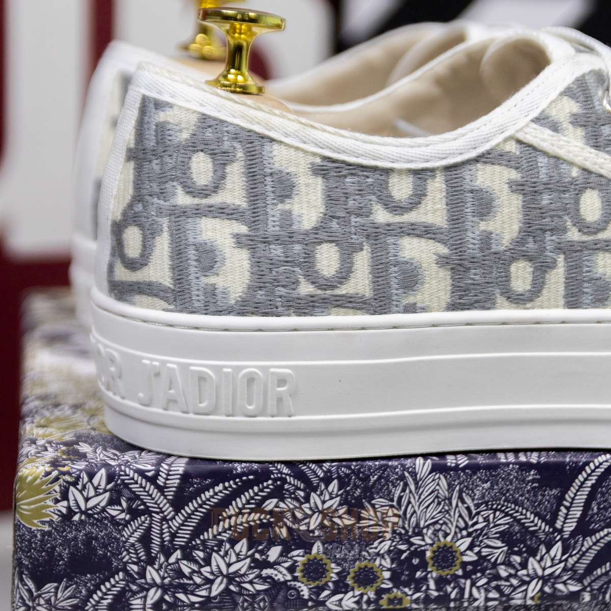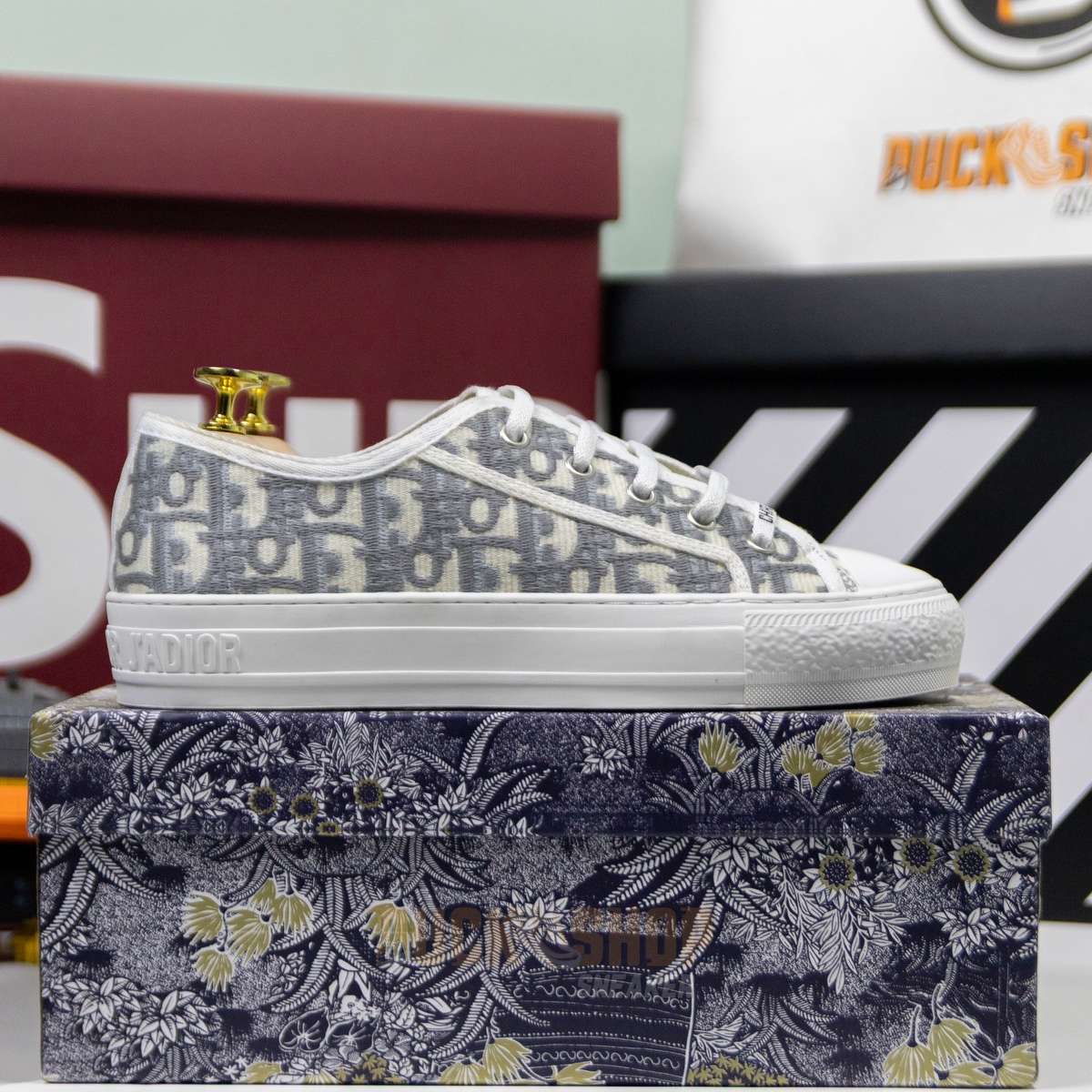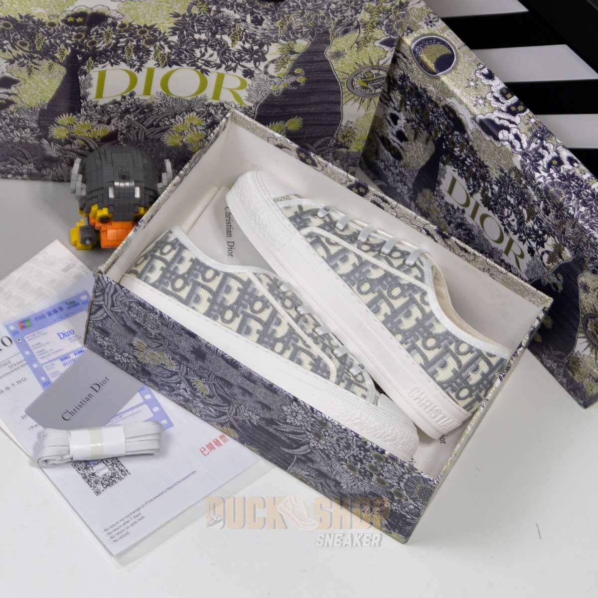 Giày WALK’N’DIOR SNEAKER Gray Stone Dior Oblique Embroidered Cotton B56
